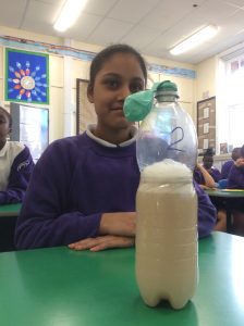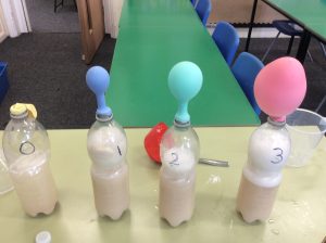 Year 6 have been learning about micro-organisms. Yeast is a microbe that feeds on sugar. When the sugar is digested a gas is released called carbon dioxide. We can see this as bubbles.