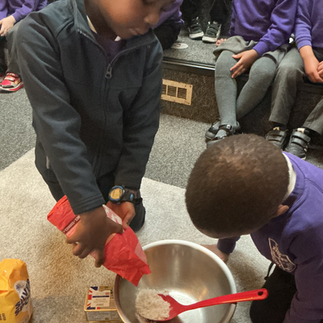 While baking, we explored lots of important science concepts. We talked about measuring ingredients and how recipes help us follow steps in the correct order. The children also learned about irreversible changes, noticing how the ingredients changed when mixed together and baked in the oven – once the mixture became a biscuit, we couldn’t turn it back! 🔬⚖️