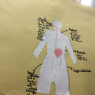 The children enjoyed learning about the digestive system. They worked in pairs to create a diagram and used scientific vocabulary as they discussed and recorded their ideas. They also enjoyed representing the digestive system in class using some leftover food and a pair of tights!